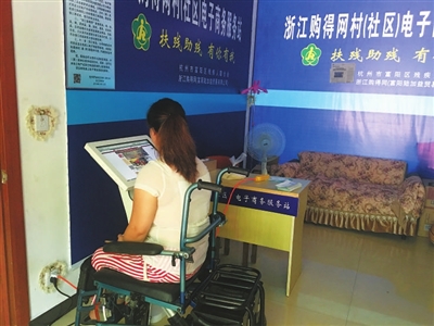 2015年12月,第一家浙江购得网村(社区)电子商务服务站正式成立。因为交通事故下肢瘫痪的村民骆晓英,成为了富阳市残疾人“互联网+”居家创业模式的第一人。