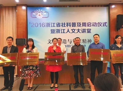 日前,浙江省社会科学联合会在浙商博物馆举行2016年浙江省社科普及周启动仪式。省社科联党组书记郑新浦在启动仪式上对浙商博物馆社科普及基地等19家第六批“浙江省社会科学普及教育基地”进行了集中授牌。省社科联领导还向相关学会赠书。