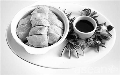 至于这白斩河田鸡的做法,那是有些讲究的。主料是长汀特产的河田鸡,以足年的公鸡为佳。配料为客家米酒、紫姜、葱、香油、精盐。鸡宰杀放血净毛,洗净之后,从鸡腹部后端肛门处起开一小口,取净内脏,彻底洗净血污。将整鸡放入大锅,注满水,文火慢煮1~2小时,至皮黄肉嫩,取出风凉,斩成鸡块,整齐装盘。葱白、葱段,紫姜剁碎,撒些盐,加入香油开水浇成姜葱汁,装碟备用。吃鸡的时候,蘸汁食用。白斩鸡保持了鸡的原味。