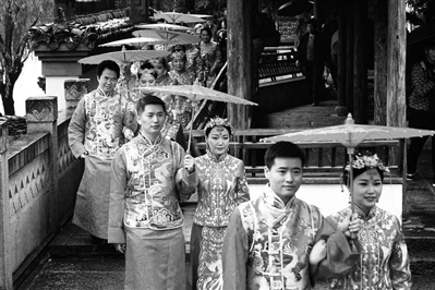 今年的大运河·湖墅婚典融入更多国际化元素,并保留了许多的经典环节。分为花驿·闺中待嫁、大兜·幸福走运、富义·相敬如宾、翠越·合卺喜宴、漕舫·同船百年、游侠·花好月圆6个环节。运河沿岸的婚俗文化如同一幅幅浓墨重彩的风情画卷,呈现出经济富庶、人文厚重的江南韵致。