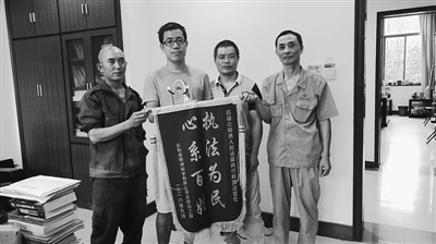 案件承办法官蓝轲接过锦旗,略显害羞地说:“你们太客气了,这是我们应该做的,是我们分内的事。”