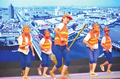 | 环卫工人登上授奖台 |