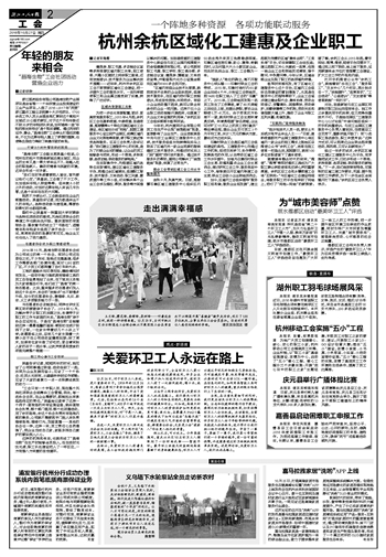 “区域内有些企业技术比较弱,就把有技术优势的企业组织起来,组建技术服务队,在区域内进行职工技能培训,形成良性竞争,共同进步。有些小企业活动搞不起来,就可以联合有条件的企业一同开展。这样不仅小企业职工活动能够开展起来,也提高了大企业文体设施的利用率。”余杭区总工会组织部部长杨军民说。