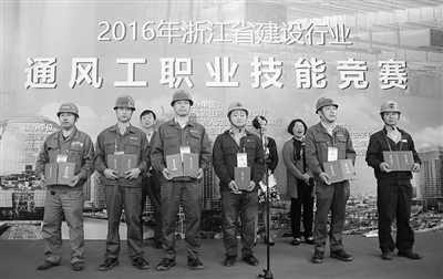 日前,在由省总工会等主办的2016年浙江省建设行业通风工职业技能竞赛中,来自全省各市的21位优秀选手,经过激烈的比拼,决出前6名。浙江中信设备安装有限公司屠海芳荣获第1名,由省人力资源和社会保障厅授予“浙江省技术能手”荣誉称号,浙建集团代表队荣获团体奖。大赛旨在进一步加快浙江高技能人才队伍建设,助推全省建筑产业转型升级。