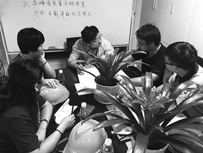 | 技能大赛设哪些项目,有哪些环节,陈钢(右二)和他们团队反复商讨,一一敲定。 |