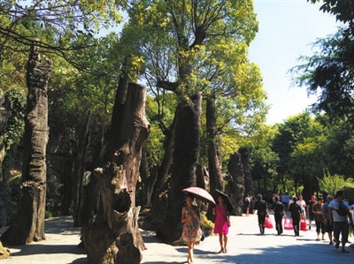 当听到浙江开化建了一座根宫佛国时,便有心去探访一番,看看根雕艺术和佛教文化是如何相容相承,交相辉映的。这根艺博览园之前其实来过不少次,最喜欢的是那梅园和醉根潭,梅影横斜,回廊婉转,再加上一潭清幽,便觉得雅趣横生。但这一次进了博览园,却没有过多地在梅园徘徊,径直往那根宫佛国奔去。