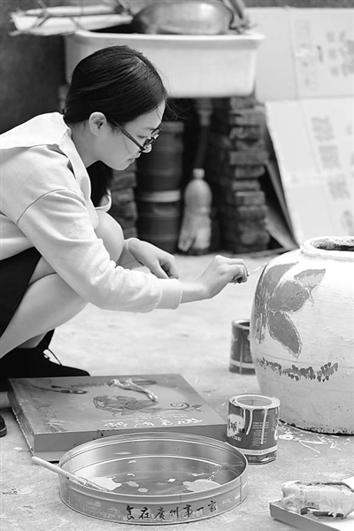 一个废弃的旧水缸、一只扔在角落里的塑料瓶,是作为垃圾添一份环保压力,还是作为一件艺术品装点美丽家园?平湖市曹桥街道总工会做出了一个“变废为宝”的小创意。最近,他们组织40名有绘画功底的女职工走进农户家,现场找寻废旧物品进行艺术创作,不光是旧花盆、旧水缸、塑料瓶,甚至连农户家的水泥晾衣杆也成了创意的物件,让村民们认识到生活废弃物原来也可以再利用,可以给自己的生活带来一抹新的色彩,一方面宣传绿色环保,减轻垃圾集运压力,另一方面也带动村民自己动手变废为宝装点家园。图为一名女职工在农户家里给一个旧坛子“穿”上新装。