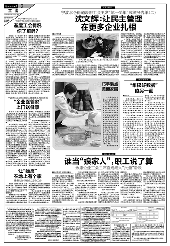 “选基层工会主席,就是让职工自己找信得过的人‘说话’,选一个真正的‘家长’。”永康市人大常委会副主任、总工会主席王瑛说。