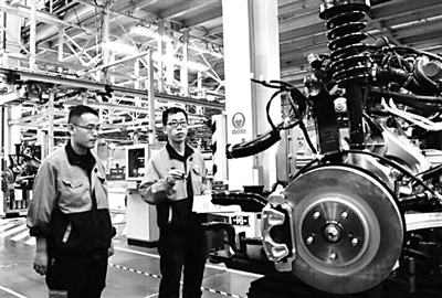 | 每次下车间,郑祖海(右)都带着一个课题:职工在这里工作,安心吗? |
