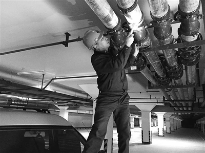| 徐福平为小区主管道“把脉体检”。 |