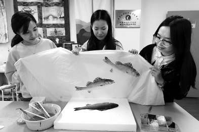 据渔文化创新团队指导老师庞冬花介绍,鱼拓类似于碑拓,是指将鱼的形象用墨汁或颜料拓印在纸上或布上的一门艺术,起源于我国,流传于宁波象山沿海地区,2014年,鱼拓画被列入象山县非物质文化遗产名录。