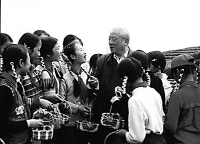 | 2004年,周大风重回泰顺时,学生们深情地唱起《采茶舞曲》欢迎他。 |