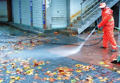 昨日,杭州入冬。一夜寒风,满地落叶。这满地的落叶,在文人眼里是美景,在环卫工人眼里就是麻烦。因为不及时清除,行人特别是老人,踩上去容易滑倒。要清扫紧紧粘在地面的落叶,不是件容易的事。当日上午,在杭城中河南路袁井巷口,一位环卫工人用一把简易的压力喷水枪,轻松“扫除”满地落叶,很多路人见此围观并点赞。小小的创新之举,不仅大大地提高了作业效率,还大大地减轻了劳动强度。