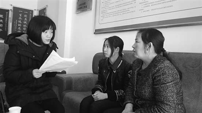 经过仔细询问,尹丽萍得知于女士和其所称的“老公”是安徽人,两人仅仅在安徽老家简单地办了酒席,并没有进行婚姻登记,已育有一女,现年10周岁。两人在台州打工有六七年了,但是并没有办理暂住证,男方家长称于女士生不出儿子,要求两人离婚。说到生不出儿子的话题时,于女士不禁潸然泪下。尹丽萍微笑地告诉于女士,她女儿很可爱,将来可是妈妈的贴心小棉袄哟。