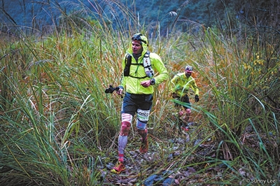 比赛赛道穿越江郎山、廿八都古镇、仙霞关、仙霞古道等著名景点,沿途既可欣赏到秀丽的江南山地景观,同时也可感受当地深厚的人文底蕴,是一次真正体验“雄关漫道、层林尽染”的越野之旅。图为比赛情景。