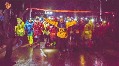 虽然天空下着大雨,来自国内外的上千名越野跑爱好者,在江郎山—峡口湖—廿八都—保安乡—江郎山长达110公里的崇山峻岭中纵情奔跑。他们不仅感受到江山浓郁的风土和人文,同时还体验到原汁原味的法式赛事风情。
