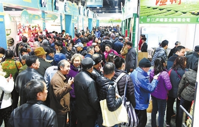 昨天,是2016浙江农业博览会的最后一天,但其火爆程度丝毫未减,农博会举办地之一的杭州和平会展中心人头攒动,人声鼎沸,不少热销摊位前的通道,连行走都很费力,许多退休工人一大早就从四面八方赶过来买、买、买。记者留意到,不少名不见经传的农副产品摊位前,挤满了消费者,排起长长的队伍;也有一些高大上的摊位前却显冷清,少有人光顾。现场不时能听到大伯大妈在议论,这家卖的东西又贵又不好;那家东西不好,今年就换了个包装……