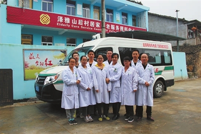 | 泽雅镇社区卫生服务中心的医务人员与“流动医院”服务车。 |