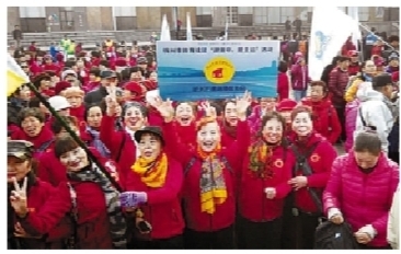 昨日上午,数千名市民齐聚杭州的滨江射潮广场,参加了由杭州市体育总会主办的杭州市体育社团“迎新年、迎亚运”活动。来自12个社团的队员们身穿各具特色的队服,上至91岁老人,下至七八岁的孩子,徒步8公里喜迎新年。