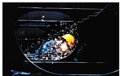 打磨、焊接、切割是最平常的工种/口罩、耳塞、安全帽、手套是必备的防护/追随着铁的气息、粉尘的味道/看那坚毅的青春在四处流淌