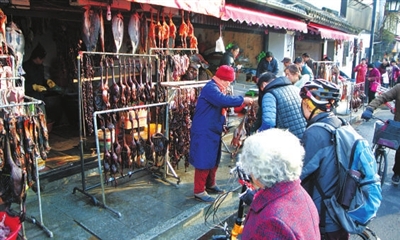 昨天早晨,在杭城察院前巷口小有名气的酱货摊前,一位自称骑自行车近2个小时赶来的中年男子一边挑选酱鸭,一边自言自语,“过年了,过年了,年货还是传统的好。”当日,附近的农贸市场里也是一派繁忙景象,许多退休工人早早地购买冬笋、肉类、海鲜等年货,准备热热闹闹地过个丰盛的中国年!