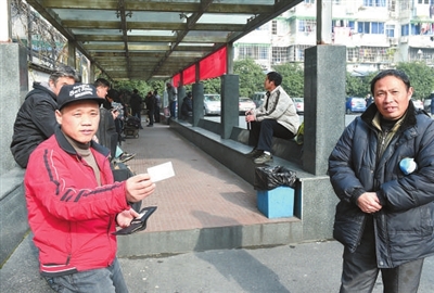 家住安徽阜南县老观乡的孙师傅,特意给记者看了当日的火车票(图①)。他说,自己今年虚岁49岁了,以前一直在杭州乔司一带的服装厂工作,因为腰肌劳损,不适合再做长期站立弯腰的服装加工活了。想着这里名声大,一下车就赶过来,等了一上午也没见有适合自己的工作,倒是见到几个气冲冲地回来要退介绍费的人。他认为,如果市场里的职介所都能做到凭诚信赚取中介费,来找工作的老乡不会这么少。