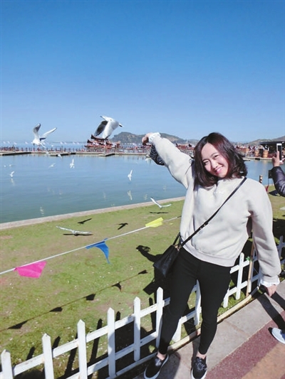 | 春节期间,孟禹廷在昆明某湿地公园观赏红嘴鸥。 |
