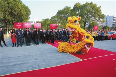 近日,温州康奈集团在康奈工业园区举行“闻鸡起舞 开门大吉——2017年新春开门红”活动。公司领导迎接员工返岗上班,并邀请专业的舞狮团队进行表演。黄玉环 记者吴晓静 摄
