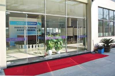 其实,杭州市第二人力资源市场已经搬至余杭塘路43号(邻近莫干山路,省委党校文欣校区对面)。当日上午10点半,临街的玻璃门锁着,但从旁边的大门进去后,能看见新市场已开业(图②),很冷清。记者周金友 摄影报道