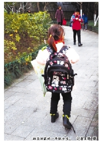 | 独自回家的一年级女生。 记者王艳 摄 |