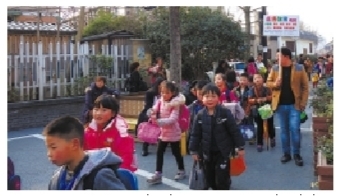 | 爸妈没时间接,只好跟着托管班的老师回去。记者王艳 摄 |