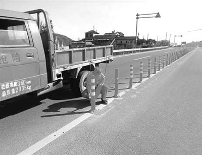 图为养护工人维修石华线示警柱。
