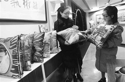 在绍兴市柯桥区毕昌煜工作室,陈列着以毕昌煜的油画为图案制作的靠垫,在光线的照射下,面料和枕芯能释放出负氧离子净化空气,减少室内甲醛含量。其原理为将纳米级仿生材料植入面料,通过与空气中的水分子接触,将水分子分解,产生负离子释放在空气中,从而起到净化室内空气的作用,深受消费者喜爱。