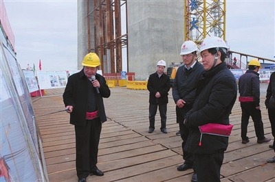 | 省交通运输厅副厅长李良福(右一)一行调研工程建设 |