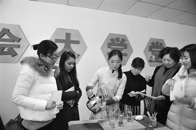 “让职工有品位地生活!”上周末,衢州市总工会“工会大学堂”里余音绕梁,茶香弥漫——50余名职工正在这里学习茶艺。据悉,市总工会专门邀请开化欧凯茶艺学校的茶艺师为职工培训茶艺知识,本次培训持续到5月,共举办10期,将有近千名职工参加茶艺培训,这也是衢州市总工会今年启动的10万职工大培训的项目之一。