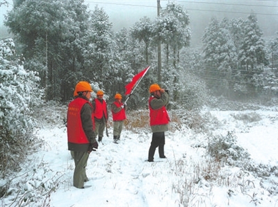 面对低温雨雪天气对电网设施设备带来的考验,为了尽可能避免设施设备故障的发生,解决线路通道安全隐患,减少线路故障,黄岩公司宁溪供电所组织人员对10千伏鞍山108线分支线路进行巡视,共巡视线路18.7公里,31台公变。仔细地对每一基杆塔进行巡视,将线路上厚厚的覆雪进行清除,检查并消除线路隐患点,并及时做好巡线记录。