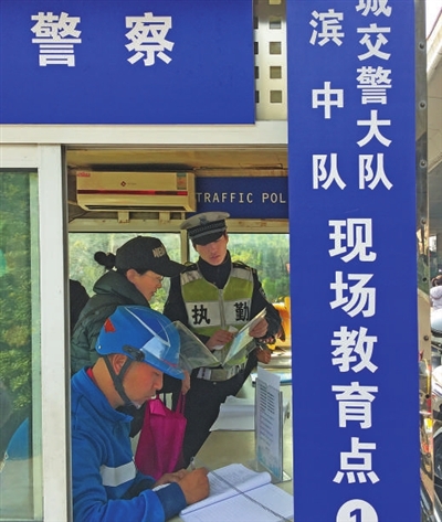 昨天,杭州开始新一轮交通秩序大整治。虽然行动已在各类媒体上广泛宣传,但是违法现象依旧“频发”。据杭州上城交警大队湖滨中队官巷口现场教育点的交警反映,目前,市民不走横道线、骑车闯红灯是普遍问题,一个上午就有三十余人次被请进教育点接受交通法安全教育,即抄写交通安全知识、交通法规试卷,书写遵守交通法规承诺书。一位骑车闯红灯接受教育的市民说,这样的“柔性”执法很能接受,自己今后一定遵章守法。