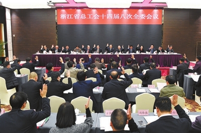 本报讯 记者王海霞报道 3月10日上午,省总工会第十四届委员会第八次全体会议在杭州召开。省人大常委会副主任、省总工会主席厉志海主持会议并讲话。