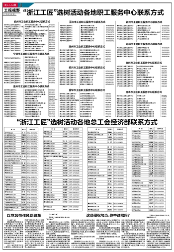 “浙江工匠”选树活动各地职工服务中心联系方式
