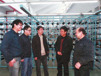 郭建立在富润集团工作已经31年了,当了10年的队长,主要负责设备日常检修、指导班组成员工作。在这几十年的时间里,他从未停止过学习。10年前,公司出于工艺要求,需要一台市场上没有的磨毛机,用于磨光西装面料精纺呢绒的表面。郭建立得知此事后,主动开始摸索,他在无数个工作间隙翻阅书籍、研究原理、制定规格……3年多的时间,这台机器从无到有、从运作不稳定到完全成熟,最终变得有模有样。直到现在,市场上还没有同类机器,而这台创新的磨毛机一直在车间里使用。