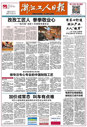 为了大力弘扬工匠精神、服务实体经济,本报从今天起推出《聚焦浙江工匠》专栏,邀请专家学者、企业家、劳模工匠就工匠精神、工匠文化进行阐述和梳理;隆重推出一批立足本职、敬业奉献、精益求精、创造优秀业绩的浙江工匠典型,展现他们的工匠之美、工匠之神、工匠之魂!