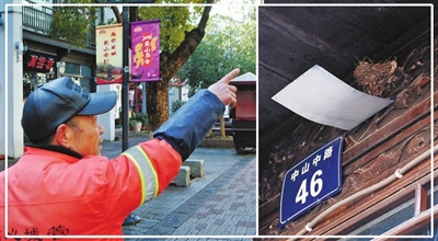昨天上午,在杭城南宋御街上清扫道路的环卫工人魏师傅,指着御街一家店铺门口木梁上的一个燕子窝,笑着说,这个“违建”可牛了,连城管都说不能拆,还要好好保护呢,这不,店家还特意做了“围护”。魏师傅说,这几年杭州坏境越来越好,久违的燕子也回来了,像这样的“违建”燕窝,在附近大井巷和河坊街上还有不少。再过20多天,这些“违建”的主人都该回来繁衍下一代了。
