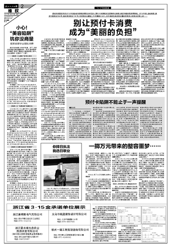 值得一提的是,为了破解预付式消费领域纠纷,宁波市海曙区消保委曾牵头在全国率先试水“互联网+单用途商业预付卡”履约保证保险。试点先期在海曙区美发、健身、母婴用品等与市民日常衣食住行联系紧密的行业开展。一旦投保的企业申请破产且被依法裁定、被依法吊销营业执照、因经营管理不善倒闭,企业拒绝履行或无法履行义务,且未能退还卡内预收的资金余额时,持卡消费者可凭电子保单到保险公司索赔全部卡内余额。