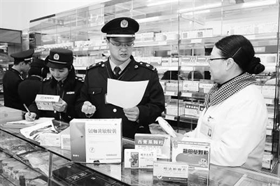 3·15消费者权益保护日前夕,龙游县市场监管局组织人员,对全县开展药品经营单位质量管理检查。此次检查的重点是药品供货资料审核、药品存储条件、特殊药品凭证销售记录制度等。对检查中发现的问题,工作人员责令限期整改,从而保障广大群众用药安全。图为工作人员在湖镇某药店检查药品。