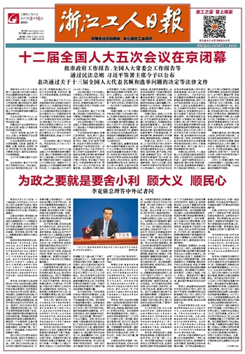 十二届全国人大五次会议在京闭幕