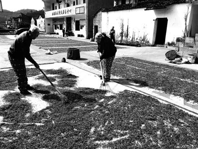| 东阳下深村民在晾晒“博士菜”。 |
