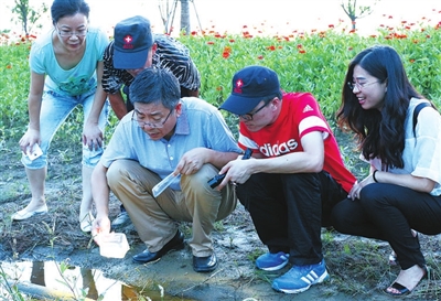 | 传防人员在G20杭州峰会场馆外围蚊虫孳生地搜寻孑孓。 |