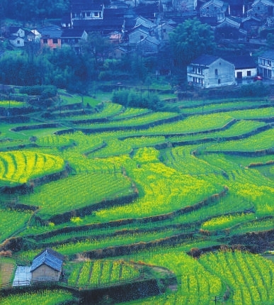 奉化市大堰镇,拥有宁波最秀美的乡村。粉墙黛瓦的农舍一律掩映在金灿灿的油菜花海洋里,纯净清澈的溪水绕廓而过,滋润着这里一个个古朴的村落。