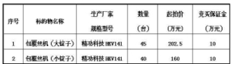 本公司受委托,定于2017年5月3日下午2时在浙江省金华市环城南路1782号华佑商务宾馆七楼会议厅公开拍卖HKV141型包覆丝机,公告如下: