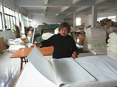 匠心,还在于精益求精。万爱珠不仅仅秉承古法造纸技术,更在实践中独辟蹊径、积极创新。万爱珠曾带队开发研制出不同于传统宣纸的“ADD高级龙康手漉画仙纸”,在2015年第五届中国(浙江)工艺美术精品博览会上获得金奖。此外,公司研制的“月光”半纸、特制半纸、印刷半纸等多种品种宣纸都颇受欢迎。改革创新也促进了古老工艺在现代市场经济的腾飞,浙江龙游辰港宣纸有限公司在万爱珠主导下开发试制了“楮皮纸”“雁皮纸”“画册纸”和“信封纸”,并开发了“国色皮纸”及加工纸等系列品种。皮纸也不仅仅适用于书法国画,而更广泛地应用于工艺伞、鞭炮和炸药引线等方面。这样一番推陈出新,不仅丰富了龙游皮纸的种类,增加了其附加价值,也创出了企业的产品品牌。